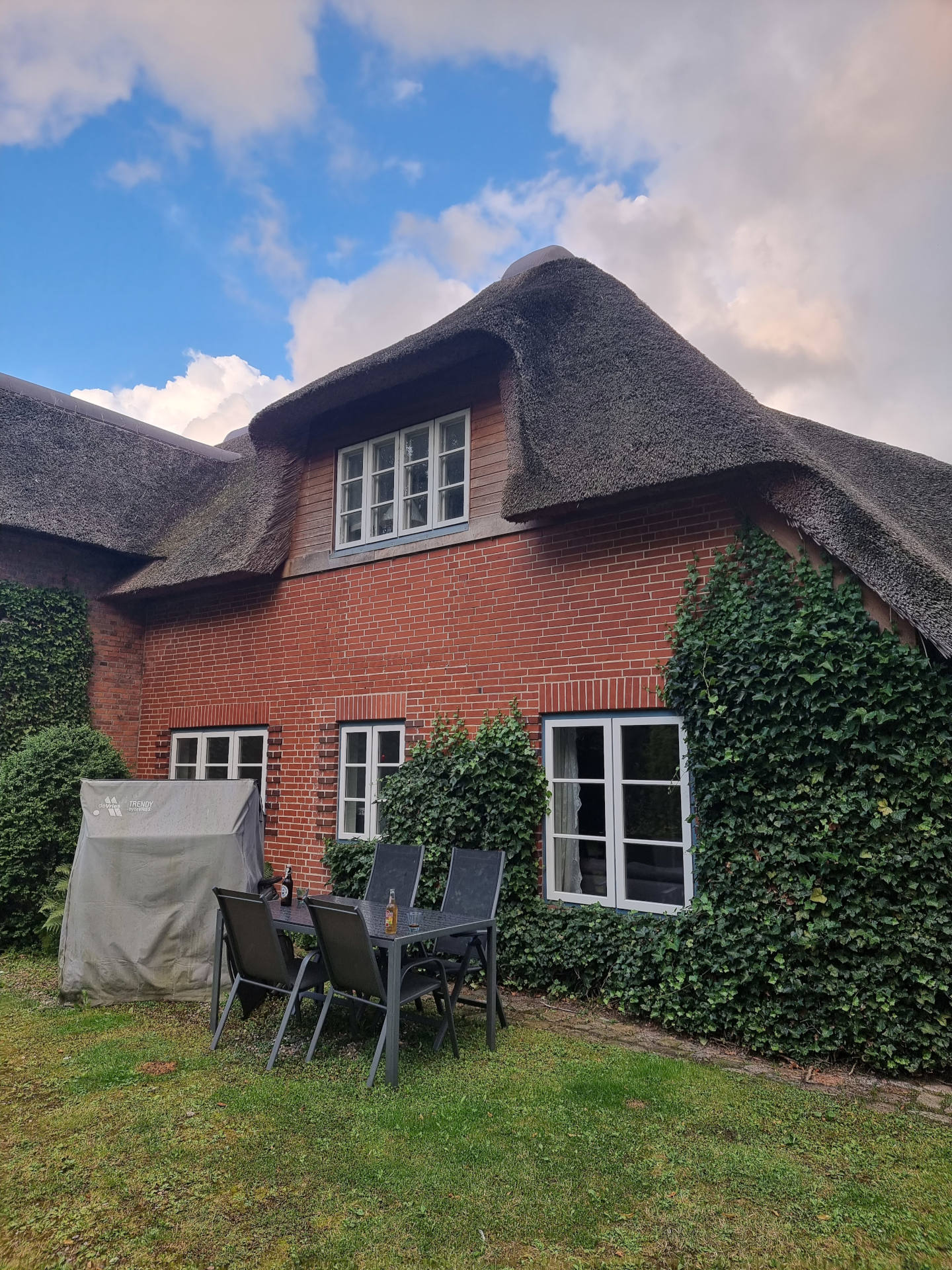 Майсенвег гэдэг байрны гудманд ирэхэд сэтгэл шингээн сэргээсэн уламжлалт сүрлэн дээвэртэй (Reet-Dachhaus) байшин биднийг хүлээж байсан бөгөөд тэнд бид орчин үеийн, тохилог амралтын байранд орлоо. Бидэнд имэйлээр хүлээн авсан кодтой түлхүүрний хайрцагны тайлбар хэрэггүй байсан, яагаад гэвэл амралтын хөршүүд байшингийн урд талын том цэцэрлэгт нарлаж сууж таараад бүх зүйлийг бидэнд найрсагаар тайлбарлан харуулж туслав,😊🙏.